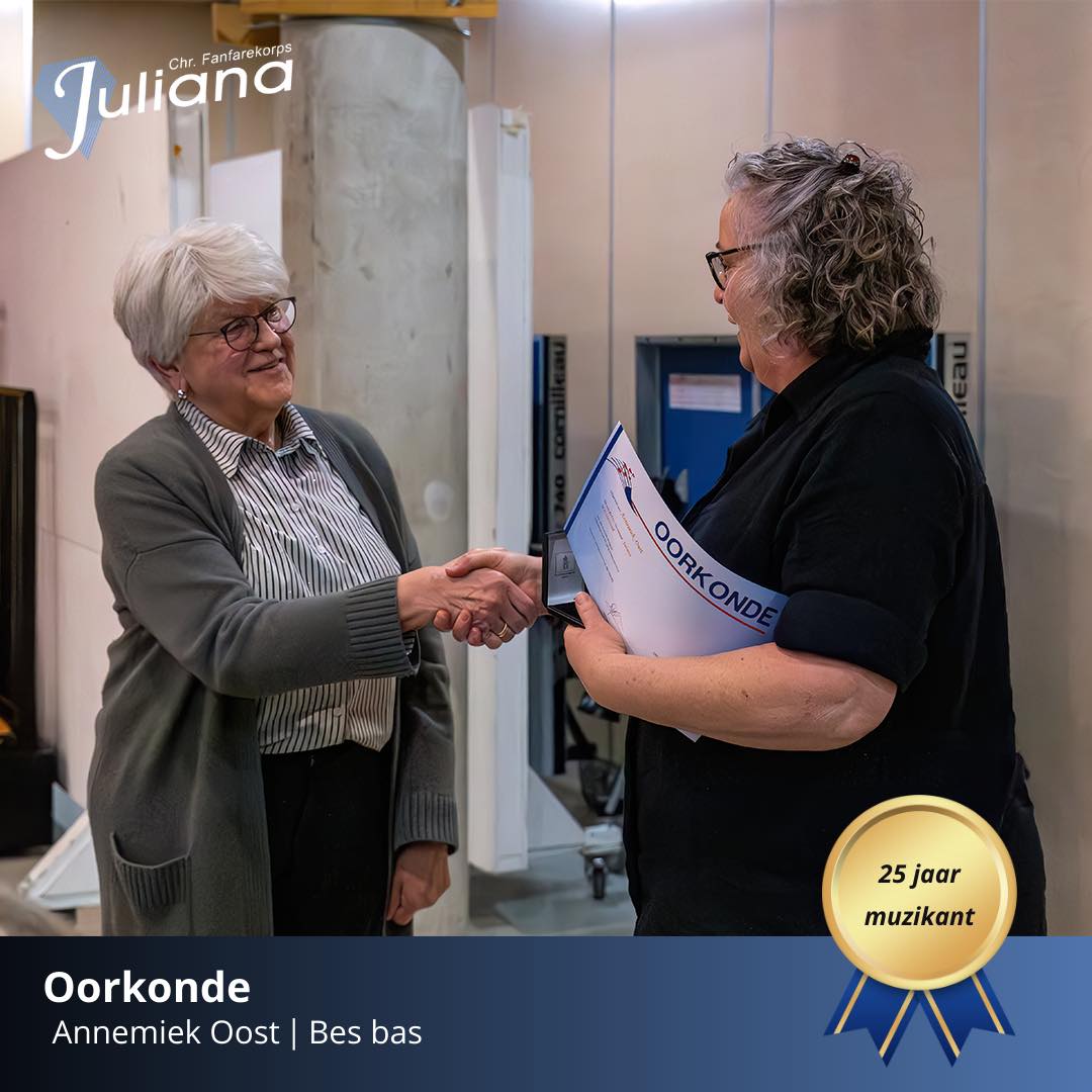 Tijdens de ledenvergadering van dinsdag 4 maart 2025 vierden we een bijzonder jubileum: Annemiek Oost is al 25 jaar muzikant! Momenteel bespeelt ze…